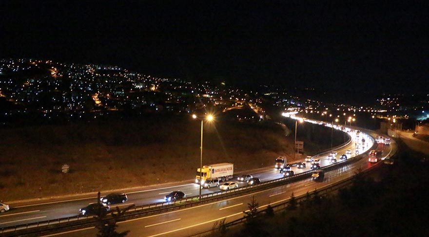 Tatilcilerin İstanbul yönünde oluşturduğu araç yoğunluğu TEM Otoyolu Kocaeli geçişinde trafiği durma noktasına getirdi. TEM Otoyolu'nda yer yer 30 kilometreye kadar uzayan araç kuyrukları oluşurken, trafik yoğunluğunun önümüzdeki pazar gününe kadar devam etmesi bekleniyor.