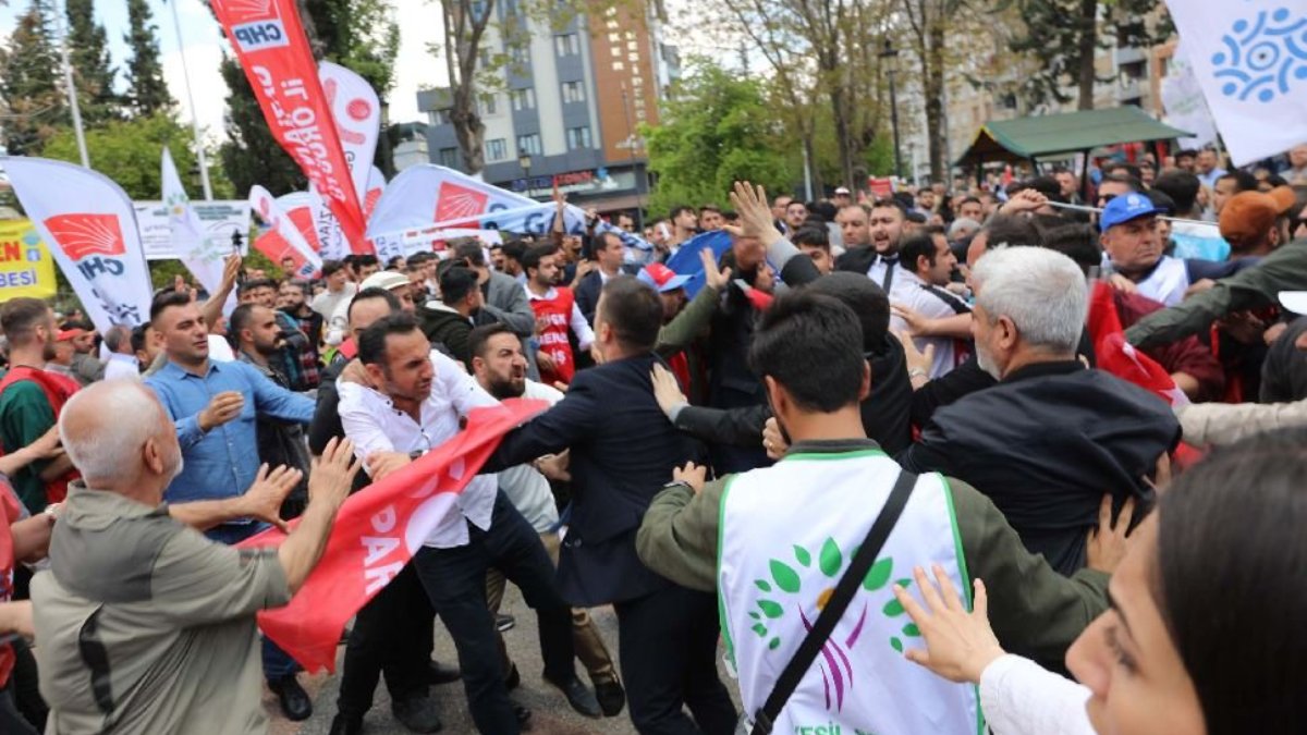 Kutlamaların sonunda Memleket Partili ve CHP'li 2 grup arasında partilerine ait bayrakların birbirlerinin önüne geçtiği iddiasıyla tartışma çıktı. Tartışma, kısa sürede tekme- tokat kavgaya dönüştü. Gerginlik, görevli polislerin araya girmesiyle sonlandırıldı. (DHA)