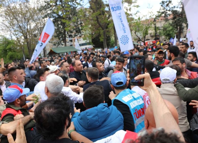Katılımcılara seslenen sendika temsilcileri, işçilerin dayanışma içerisinde olması gerektiğini belirtti.