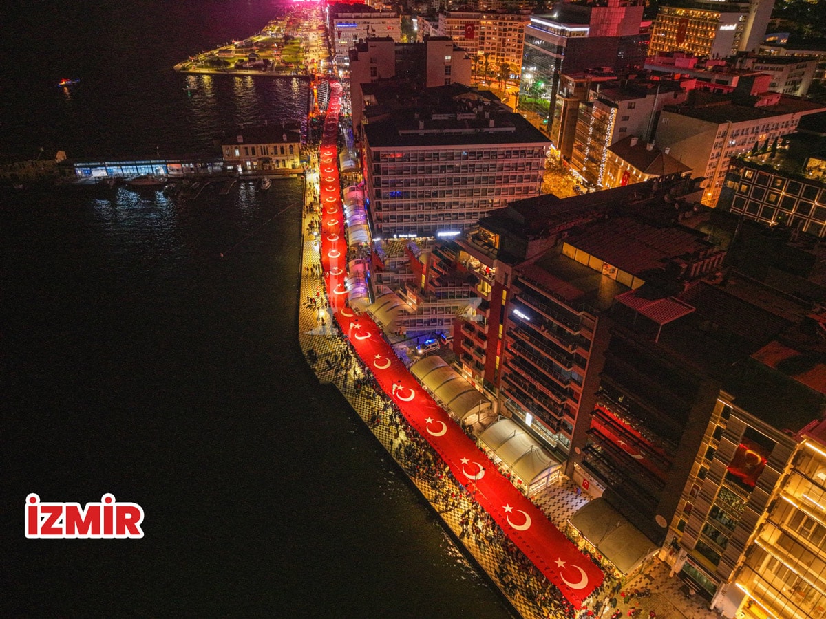 İzmir’de Cumhuriyet’in 102. yıl dönümü, binlerce vatandaşın katıldığı Fener Alayı ile kutlandı. Konak’tan Cumhuriyet Meydanı’na uzanan kortejde 350 metrelik dev Türk bayrağı taşındı ve kutlamalar Gündoğdu Meydanı’ndaki Haluk Levent konseriyle devam etti.