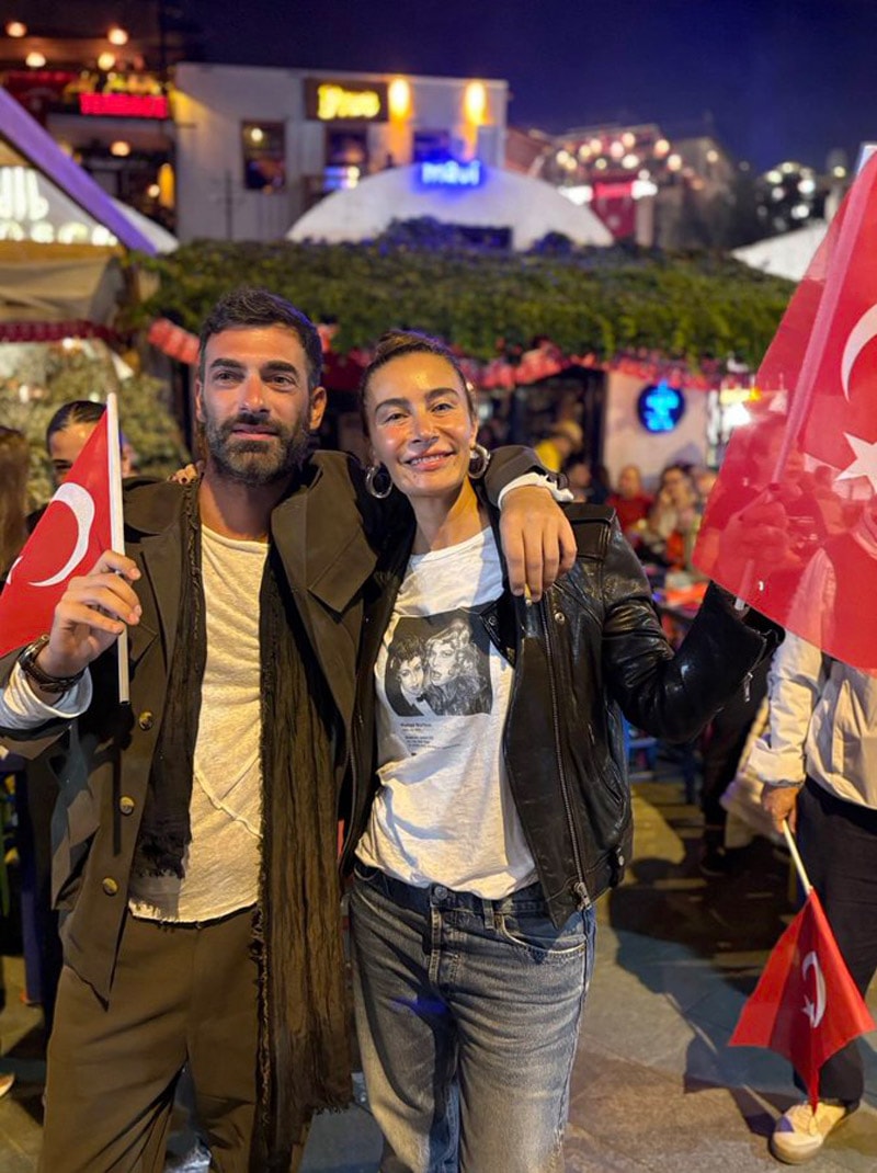 Oyuncu İlker Kaleli ve sevgilisi ünlü şarkıcı Sıla, vatandaşlarla birlikte Kadıköy’deki 29 Ekim kutlamalarına katıldı.