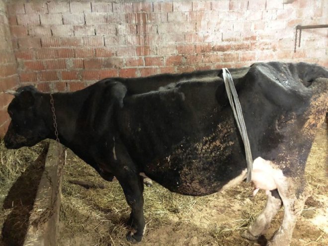 Mesut Akıncı'nın çağırdığı veteriner hekim, ineğin hamile ve doğumunun yakın olduğunu söyledi.