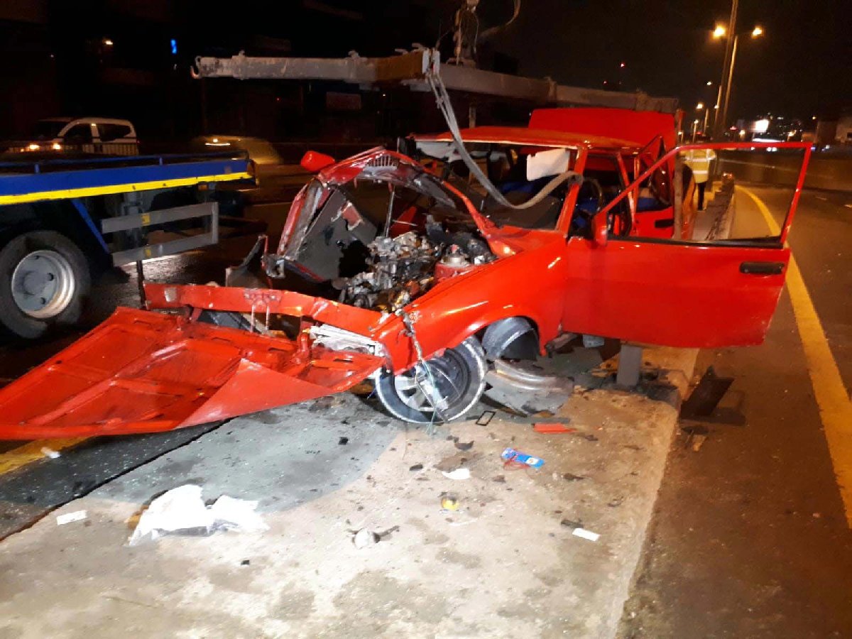 Çarpmanın şiddetiyle metrelerce sürüklenen otomobil, hurdaya döndü. Kazada sürücü M.D. ile ön koltukta oturan eşi E.D. yaralandı.