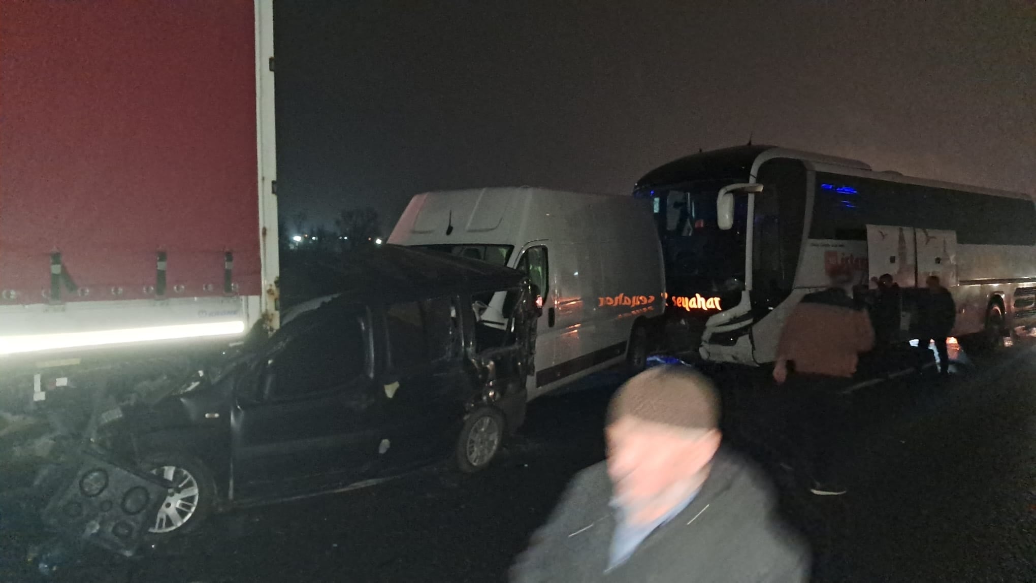 Otoyolun Ankara istikameti Erenler ilçesi mevkisinde yolcu otobüsü, tır, minibüs, otomobil ve ticari aracın da aralarında bulunduğu 10'dan fazla araç zincirleme kazasına karıştı.