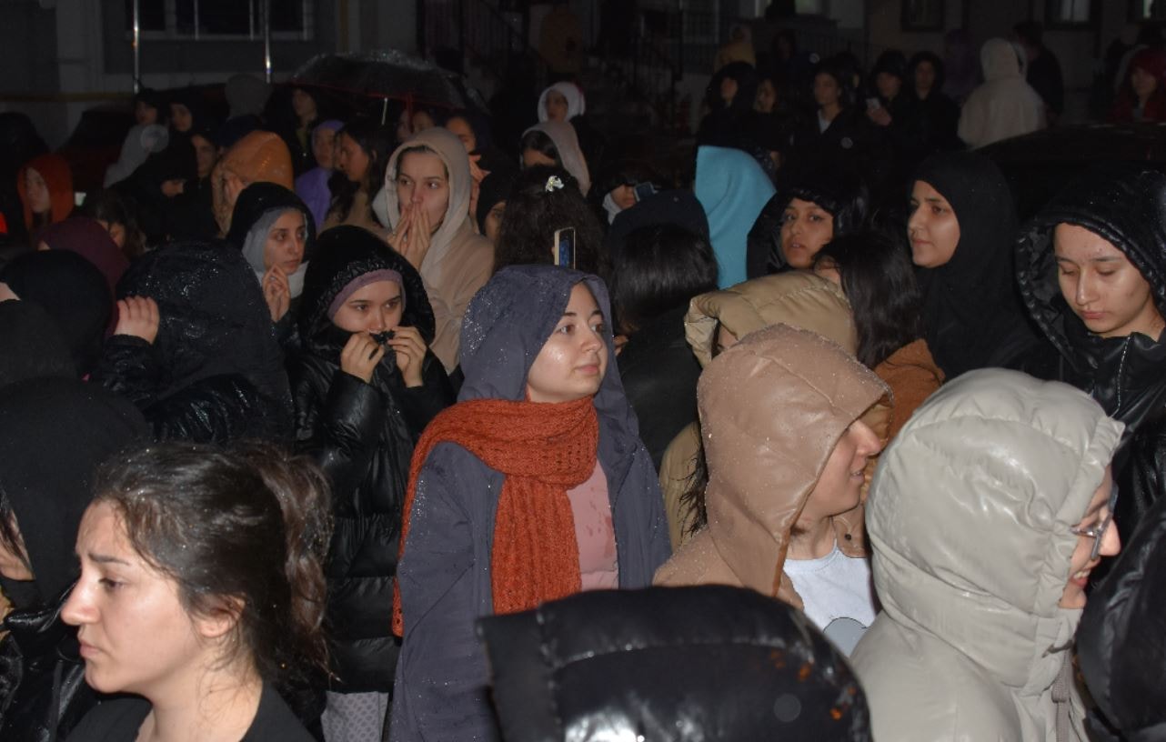 Asansörün arızalanması ve öğrencilerin mahsur kalmasına tepki gösteren çok sayıda öğrenci, yurt bahçesinde toplanarak yaşanan olayı protesto etti. Yağmur altında slogan atan öğrenciler, bir süre sonra odalarına dağıldı. Jandarma ve polis ekipleri ise yurt çevresinde güvenlik önlemi alındı.