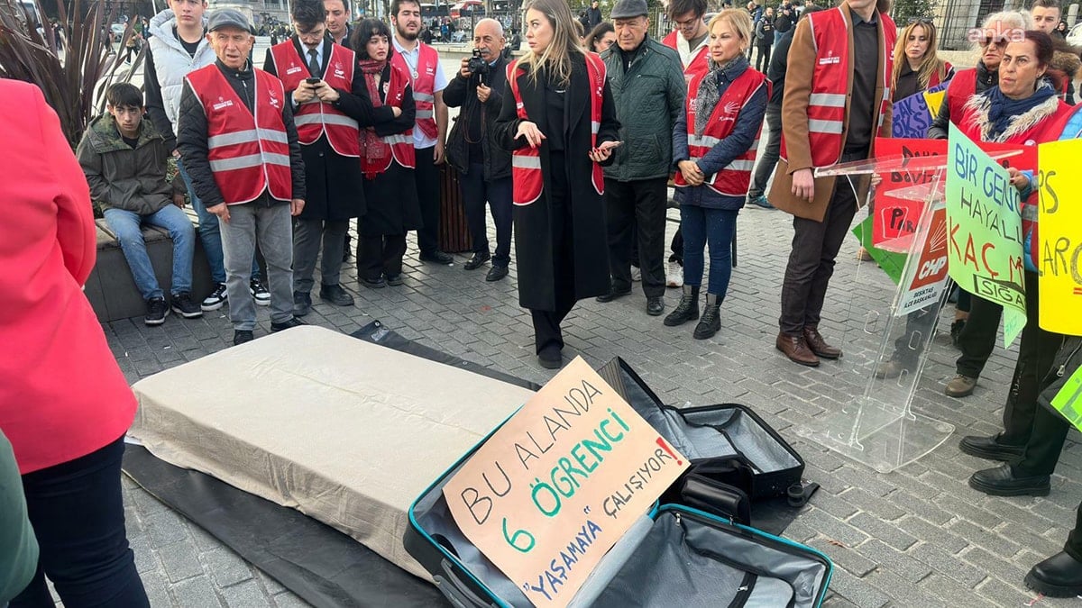 İstanbul’da, CHP Beşiktaş İlçe Başkanlığı, öğrencilerin geçim ve barınma sorunlarını gündeme getirdi. Barbaros Meydanı’nda gerçekleştirilen eylemde sorunlara dikkat çekmek için yatak, bavul ve beslenme çantası getirildi. Ancak emniyet yetkilileri, kamu düzenini bozacağı gerekçesiyle yatak ve 2 bavuldan oluşan sergiyi kürsünün önünden kaldırdı. Eylemde konuşan gençler, şunları kaydetti: “Öğrenciler geçinemiyor, barınamıyor, okuyamıyor. Gençler ya aç kalmakta ya da çalışmak zorunda bırakılmaktadır. Eğitim hakkı, geçim derdiyle gasp edilmektedir. KYK yurtları yetersiz, özel yurtlar ise fahiş fiyatlarda. Bugün İstanbul’da yaklaşık 30-35 üniversite öğrencisine 1 KYK yatağı düşüyor. Bu ülkenin sermayesi de bütçesi de düzgün kullanılsa hepimize yeter.”