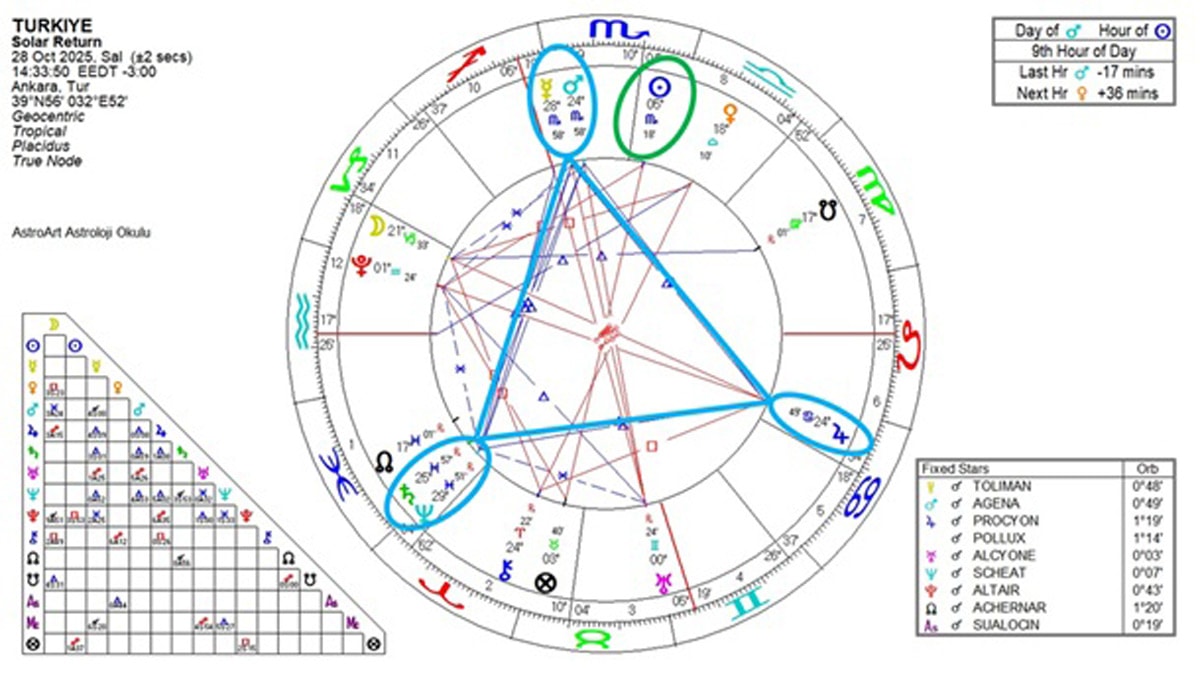 29 Ekim’den başlayarak 4 Kasım’a kadar uzanan birkaç günlük süreçte Merkür ve Mars’ın Uranüs ile karşıt açıları çok etkili olacak. Sismik aktivitede önemli ölçüde artışa işaret ediyor olabilir.