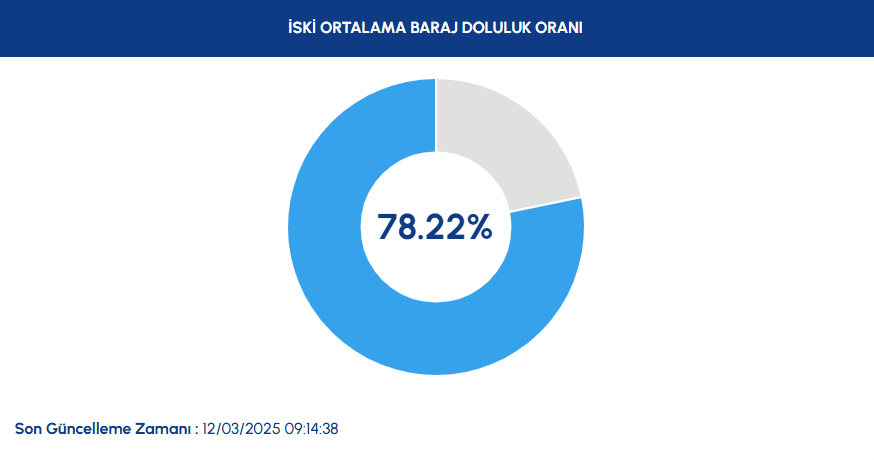 İSKİ'nin verilerine göre dün yüzde 78.14 olan baraj doluluk oranı bugün yüzde 78.22 olarak ölçüldü.