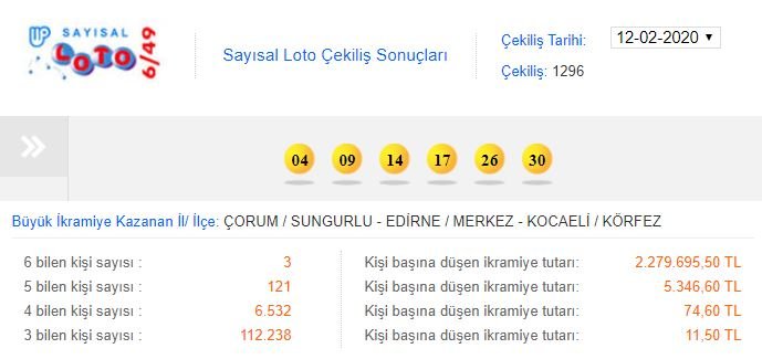 İKRAMİYESİNİ ALMAK İSTEYENLER İÇİN;(3) ve (4) bilenlere, ikramiyeleri Loto bayilerinden, (5) bilenlere, ikramiyeleri Loto bayileri veya MPİ Şubelerinden, (6) bilenlere ise, ikramiyeleri Milli Piyango idaresi Genel Müdürlüğü tarafından ödenecektir.