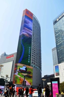 Çin'in Chongqing kentindeki 125 metre yüksekliğindeki bir gökdelenin etrafına kaplanan LED ekran, bu alanda bir rekora sahip