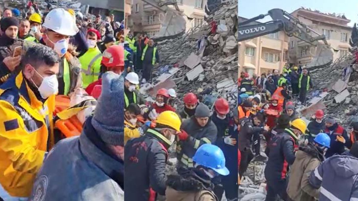 Kahramanmaraş merkezli depremlerin vurduğu Antakya ilçesinde, yıkılan bir binanın enkazında arama-kurtarma çalışması yapıldı.