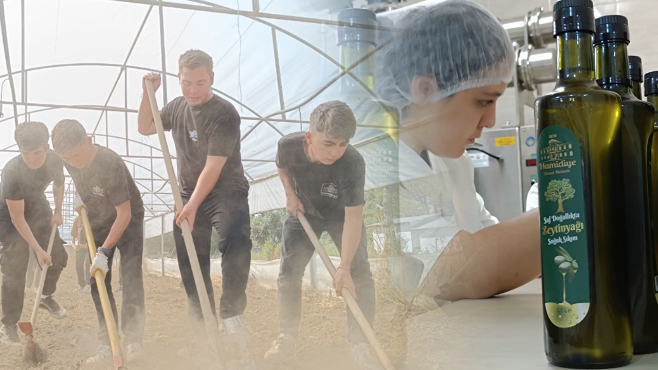 Şehir merkezinde köy hayatı yaşayarak, çiftçilik yapan öğrenciler, bir yandan besledikleri tavukların yumurtalarını satarak gelir elde ediyor, bir yandan da ektikleri sebzelerin hasadını yapıyor. 400 dönüm arazi üzerine kurulu okulda, 2022 yılında beri ahududu, böğürtlen, Frenk üzümü, vişne, ayva, şeftali, Trabzon hurması, kabak, maydanoz, roka, ıspanak, brokoli, karnabahar, zeytinyağı ve tıbbi aromatik bitkilerin de aralarında olduğu 40 çeşit ürün, 300 dönümlük alanda yetiştirilip, satılıyor. Meyve-sebze kurutma ile zeytinyağı ambalajlama tesisinin de yer aldığı okulun, 82 tescilli ürünü bulunuyor.