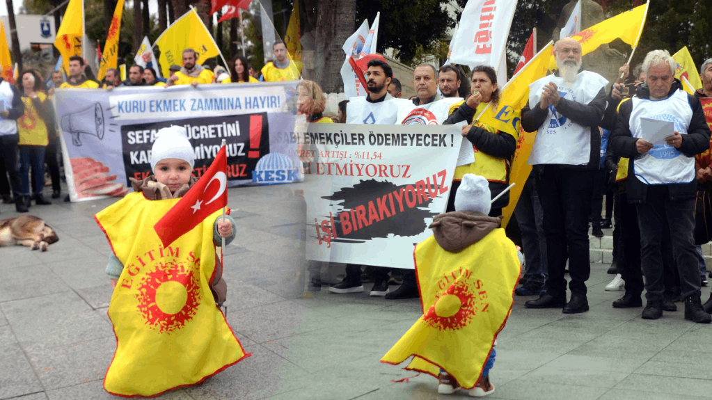Bodrum’da öğretmenlik yapan annesi Fatoş Aygün ile birlikte eyleme elinde Türk bayrağı ve üzerinde Eğitimsen yeleği ile katılan 14 aylık Berkin Aygün eyleme damgasını vurdu. Kuru Ekmek Zammına Hayır yazılı pankart önünde duran Aygün daha sonra müzik eşliğinde memurlarla halay çekti.