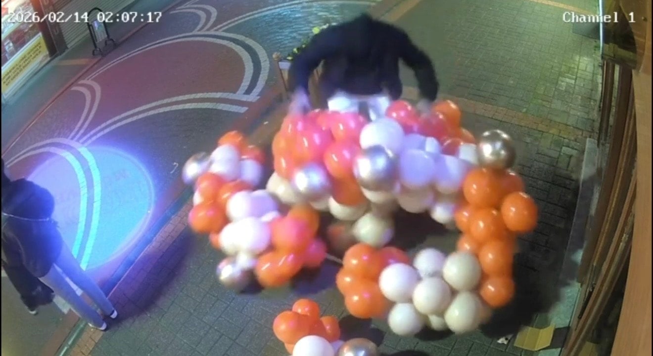 Sabah dükkanını açmaya gelen işletme sahibi, süslemelerin yerinde olmadığını ve parçalanmış balonları görünce durumu polise bildirdi. Güvenlik kamerası kayıtlarını inceleyen ekipler, şahsın balonlarla "mücadelesini" saniye saniye izledi. Görüntülerde şahsın bir adet balonu eline alıp diğerlerini hırsla patlattığı anlar net bir şekilde görüldü.