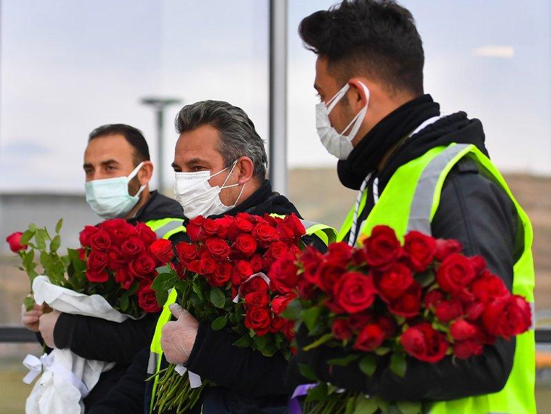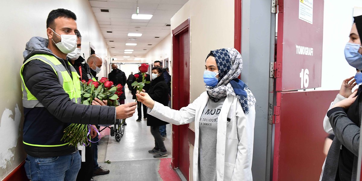 Ankara Büyükşehir Belediyesi ekipleri, Başkentli çiçekçilerden satın alınan kırmızı gülleri 14 Şubat'ta hastanelerde görevinin başında olan sağlık çalışanlarına ve hasta yakınlarına dağıttı.