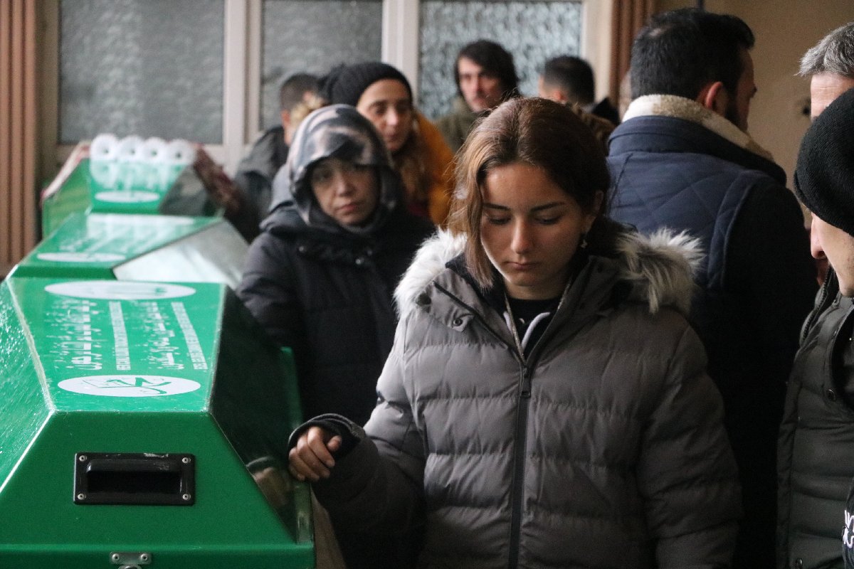 Selçuk Ailesinin yakınları tabutların başında taziyeleri kabul etti. Enkaz altından kurtarılan 14 yaşındaki Rengin Selçuk, ailesinin bulunduğu tabutlara tek tek dokundu.