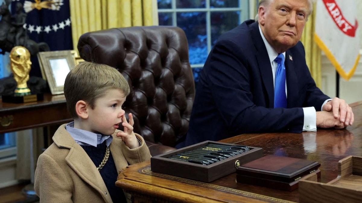 Geçen hafta '1 numarası' Elon Musk ve oğlu X ile Oval Ofis'te bir araya gelen Donald Trump, 145 yıllık ikonik "Resolute Masasını" değiştirdi. Trump'ın bu kararının ardında, 4 yaşındaki X'in 'masanın altına sümüğünü sürmesi' olduğu öğrenildi.