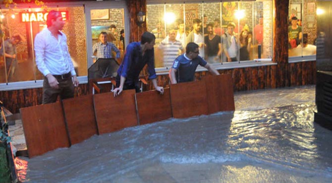 Saat 19.20 sıralarında önce yağmur şeklinde başlayan ve zaman zaman doluya dönüşen yağış kısa sürede etkili oldu. Yağışın şiddetlenmesiyle birlikte altyapının suyu taşımada yetersiz kalması sonucu cadde ve sokaklarda su birikintileri oluştu. Araçlar biriken sularda ilerlemekte zorluk çekerken, yayalar da karşıdan karşıya geçmekte zorlandı. Maddi hasarlı trafik kazalar yaşandı. Biriken sular kent merkezinde özellikle Eski Belediye Sokak üzerindeki aralarında turistik otellerin de bulunduğu bir çok işyerinde baskınlara neden oldu. Dükkan ve işyeri sahipleri suyun önüne set çekerek içeriye dolmasına engel olmaya çalıştı. Su dolan işyerleri ise kovalar ile boşaltılmaya çalışıldı. İtfaiye ekipleri de suyun tahliyesi konusunda esnaflara yardım etmeye çalıştı. Dükkan sahipleri her kısa süreli yağışta benzer durumlar ile karşılaştıklarını belirterek belediyeye tepki gösterdi. Yağışın etkisini kaybetmesi ve suların çekilmeye başlamasıyla esnaflar rahat bir nefes aldı.
