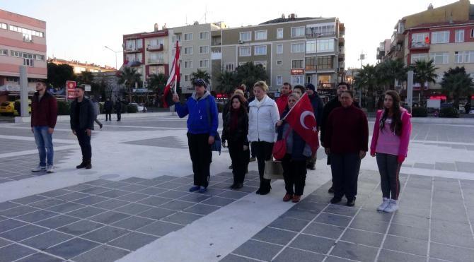 İMKB Mesleki Teknik ve Anadolu Lisesi öğrencisi 19 yaşındaki Orhan Gün, bugün saat 17.00`de Cumhuriyet Meydanı`nda `Şehitlere saygı ve teröre lanet yürüyüşü` düzenledi. Yürüyüşü günler öncesinden sosyal paylaşım sitelerinden duyuran Gün, Cumhuriyet Meydanı`ndan da megafonla anons yaparak Çanakkaleliler`i yürüyüşe davet etti. Ancak, saat 17.00`de başlayacağını duyurduğu yürüyüşe 20 dakikalık gecikmeye rağmen sadece 15 kişi katıldı. Grup, meydanda saygı duruşunda bulunulup, hep bir ağızdan İstiklal Marşı okundu. Ardından lise öğrencisi Orhan Gün, bir basın açıklaması yapıp, terör saldırılarını kınadıklarını söyledi.