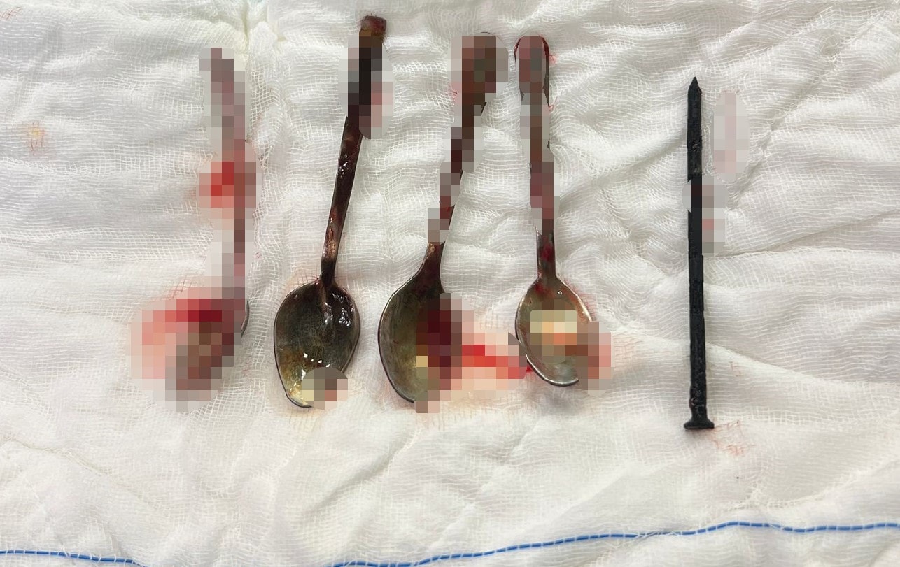 Kayseri'de, bir aile çocuklarının mide şikayeti üzerine hastaneye başvurdu. Kayseri Şehir Hastanesi’nde yapılan incelemede çocuğun midesinde 4 metal tatlı kaşığı ve 1 çivi görüldü.