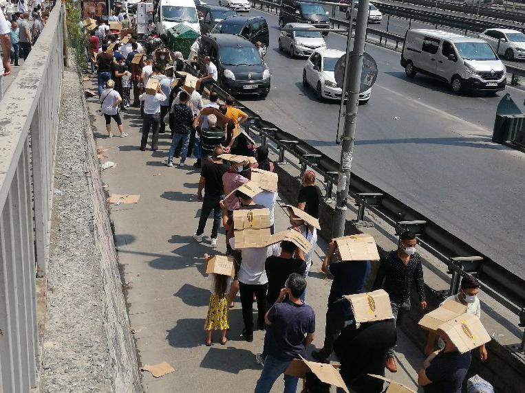 Bazıları sıcaktan daha az etkilenmek için karton parçalarıyla kendilerine gölge yaptı. Metrelerce uzayan baklava sırası havadan görüntülendi.
