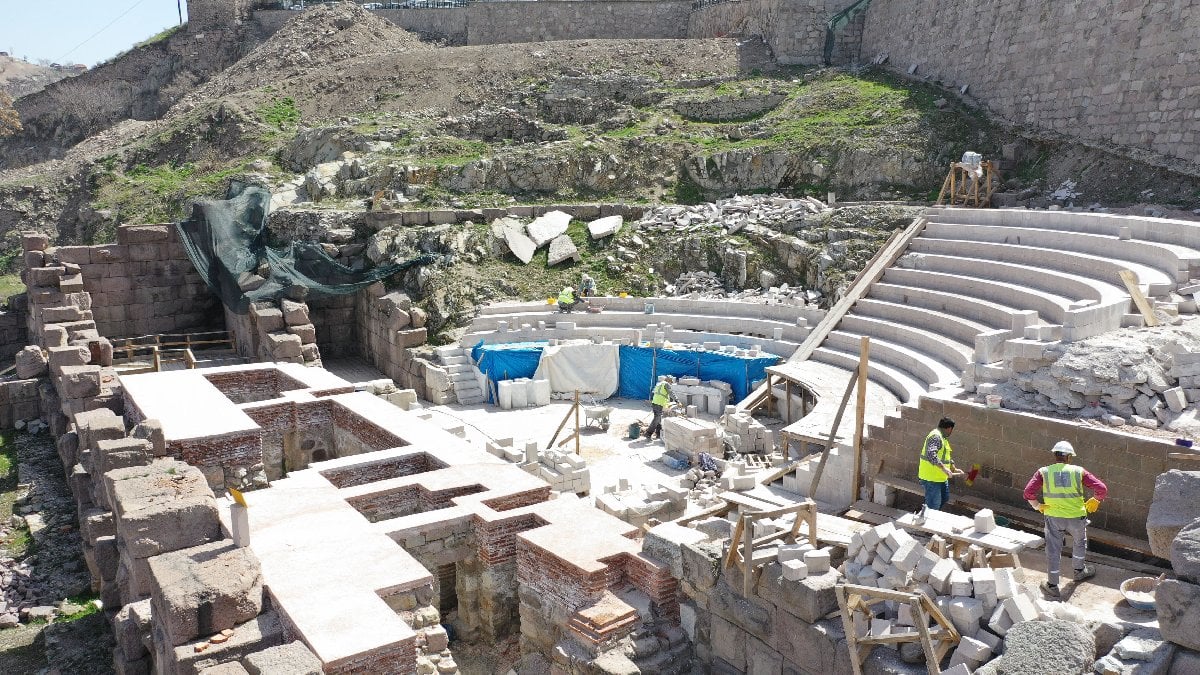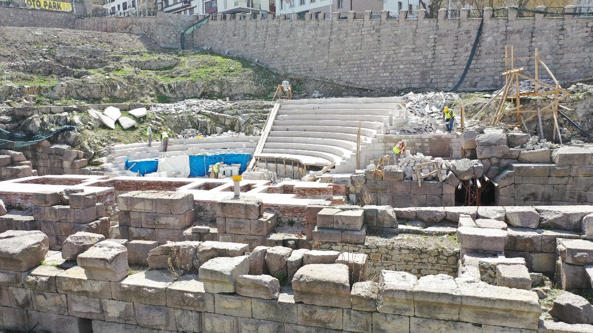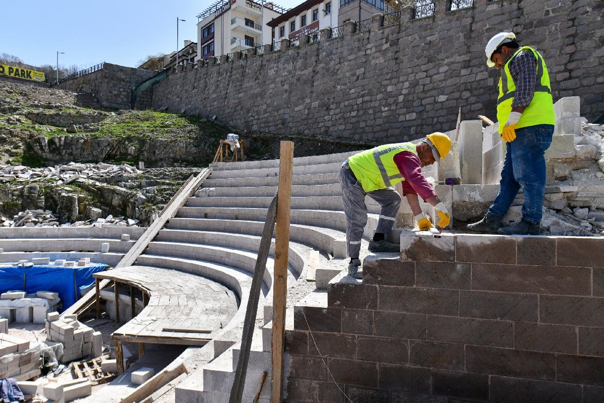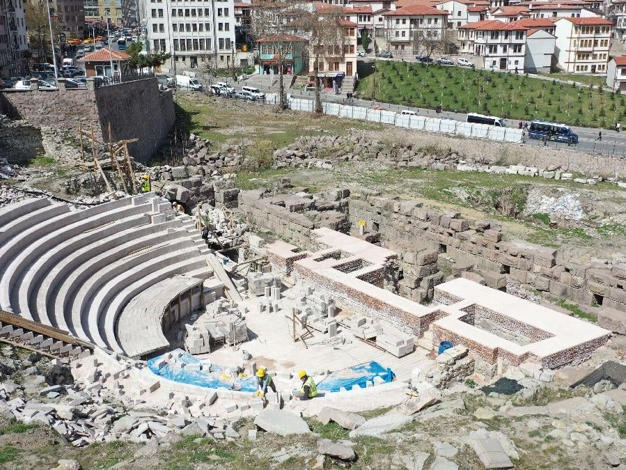 Arkeopark Projesi kapsamında 2020 yılında restorasyon çalışmalarına başlanılan 2 bin yıllık Antik Roma Tiyatrosu’nda çalışmalar yüzde 70 oranında tamamlandı. Cumhuriyet’in 100’üncü yılında Başkent turizmine kazandırılması hedeflenen tiyatroda basamak yerleştirme çalışmaları hızla ilerliyor.