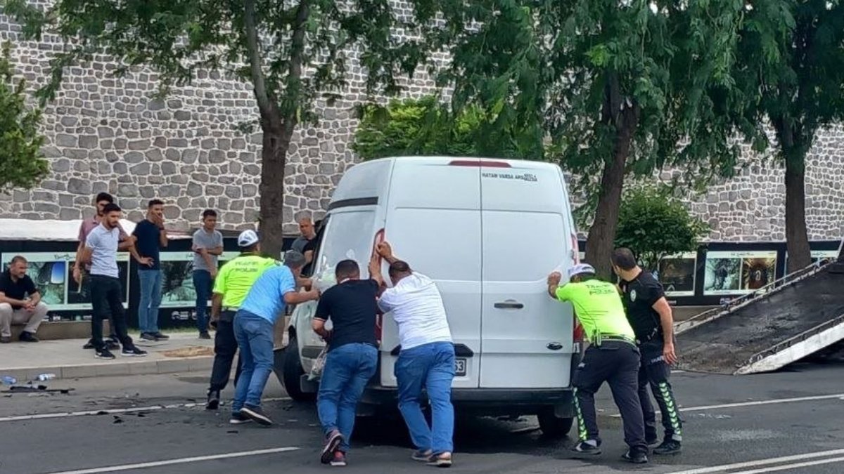 Sur ilçesi Turistik Caddesi üzerindeki M.Y.nin kullandığı 10 BJ 263 plakalı minibüs ile A.G. yönetimindeki 21 M 0462 plakalı şehir içi minibüs kafa kafaya çarpıştı.