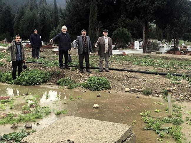 FOTO: DHA- BURSA'NIN İZNİK İLÇESİNDE KIRSAL ÇİÇEKLİ MAHALLESİNDE VATANDAŞLAR MEZARLIK BOLGESİNDE KANALİZASYON BORULARININ PATLADIĞINI İDDİA ETTİMahalle sakinlerinden İmam Muhammet Altaç da, "Yıllardan beridir bu sorun ile karşı karşıyayız. Daha dün bir vatandaşımızı resmen pis suyla nemlenmiş mezara defnettik, artık yeter" dedi. Muhtar Halil Gergin ise, "Çözüm aramak amacıyla başvurmadığımız merci kalmadı. Henüz bir gelişme olmadı. Şu anda mezarlar çökmeye başladı, acil yardım istiyoruz. 20 senedir aynı manzara" ifadelerini kullandı. DHA
