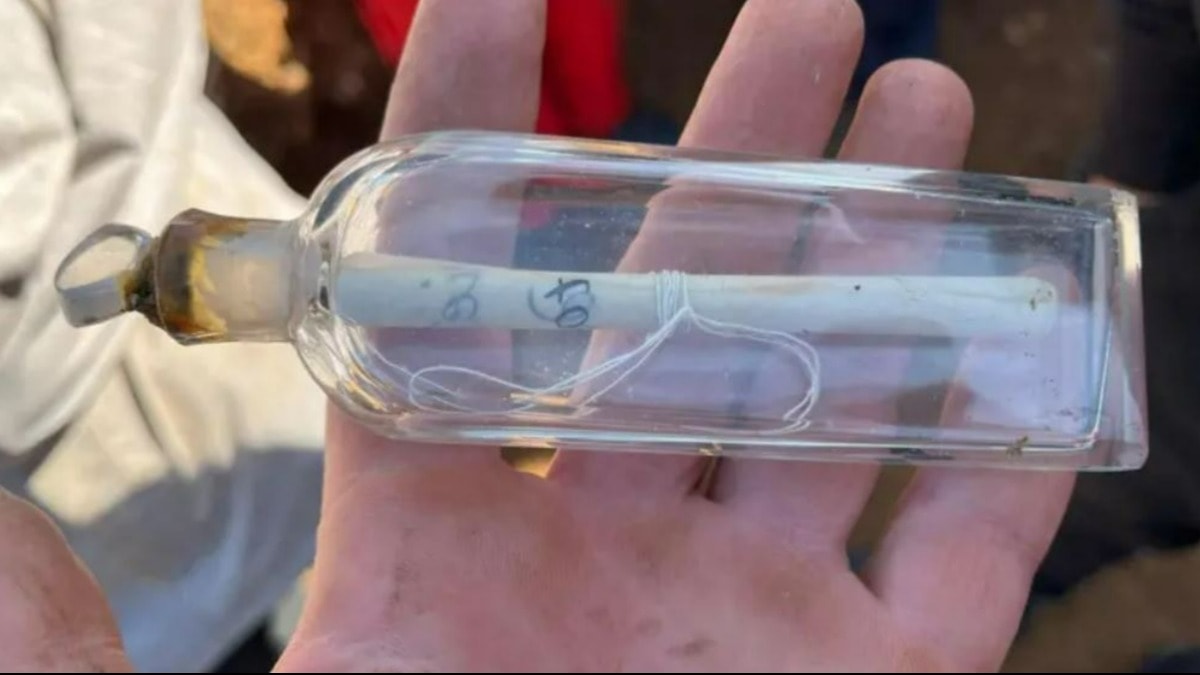 Fransa'nın Dieppe şehri yakınlarındaki falezlerin üzerinde yer alan bir Galya köyünün kalıntıları üzerinde çalışan öğrenciler, toprak bir kabın içinde, küçük cam bir şişe buldu.