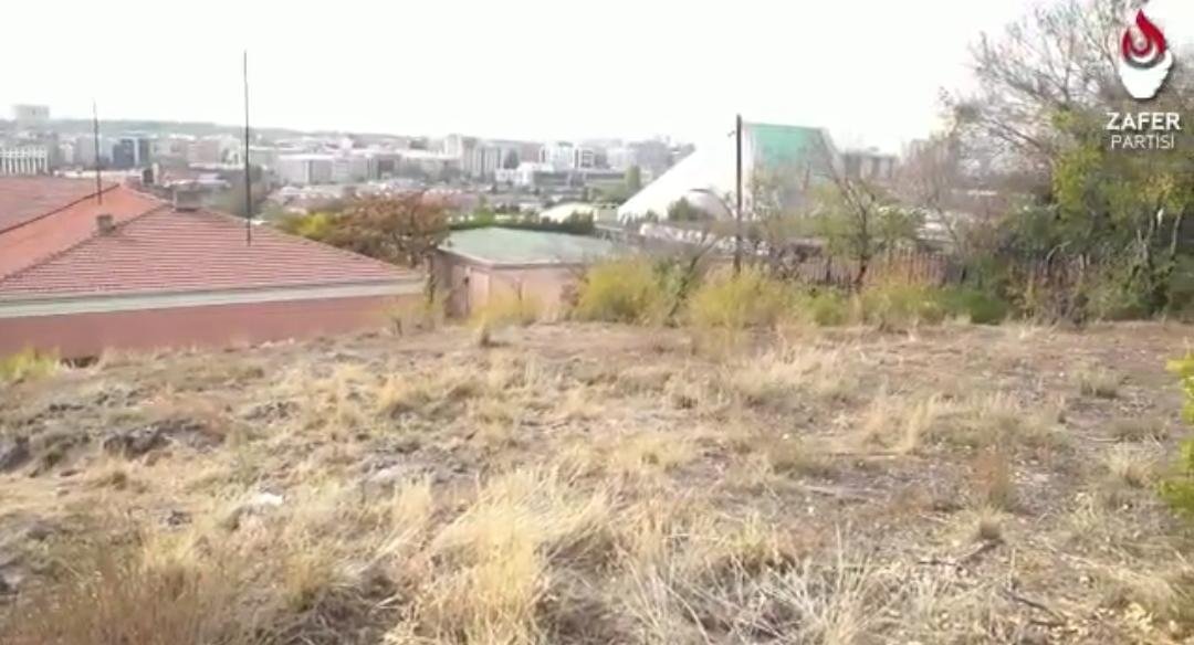 “Ankara’nın kalbi olan Ulus’ta Namazgâh Tepe’deyiz. Hemen arkamızda tarihi Türk Ocakları binası var, Şimdi Etnografya Müzesi. Gazi Mustafa Kemal Atatürk’ün cenazesi Anıtkabir’e taşınana kadar burada muhafaza edildi. Şu an üzerinde bulunduğumuz tepede 200’e yakın şehidimiz naaşları yatıyor. Bu şehitlerimiz Sakarya Savaşı sırasında muharebe meydanında yaralanıp Ankara’ya hastaneye tedavi edilmek için getirilen fakat hayatlarını kaybederek şehit olan Mehmetçiklerimiz. Bu izbe yerde köpekler uyuyor ve tam anlamıyla bir sefalet yaşanıyor. Tarihe büyük bir saygısızlık yapılıyor.”