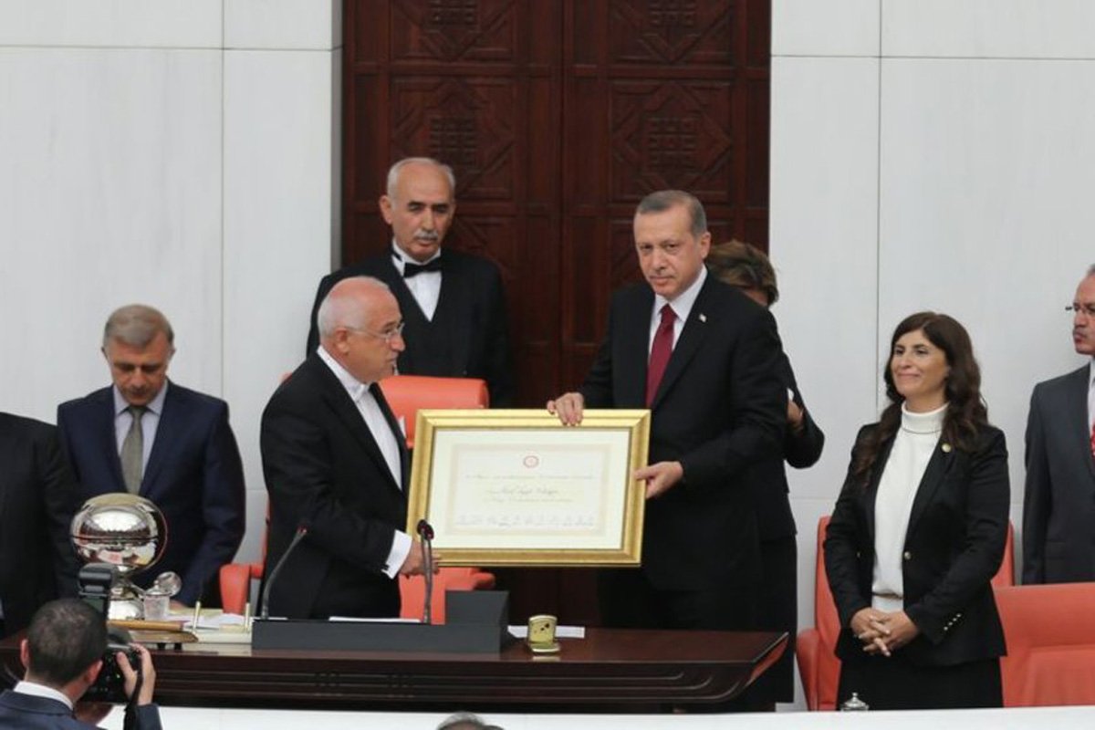 12. Cumhurbaşkanı seçilen Erdoğan,28 Ağustos 2014’te mazbatasını dönemin TBMM Başkanı Cemil Çiçek’ten aldıktan sonra yemin ederek görevine başladı.