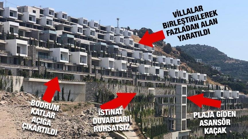 Bodrum'un Gündoğan Mahallesi'ndeki, Çevre ve Şehircilik Bakanı Murat Kurum'un incelemelerinden sonra inşaatı durdurulan The Bo Viera projesinin, imar ile yapı ruhsatına aykırı olan bölümlerinin yıkımı için çalışmalara başlandı. Yıkım için gelen belediye ekiplerinin kepçelerinin kullanılmasını istemeyen firma yetkilileri, kaçak bölümleri kendilerinin yıkacağını belirtti. Yetkililerin gözetiminde ilk olarak sahile inilen asansör bölümünün kaldırılması için firma elemanlarınca çalışma başlatıldı.