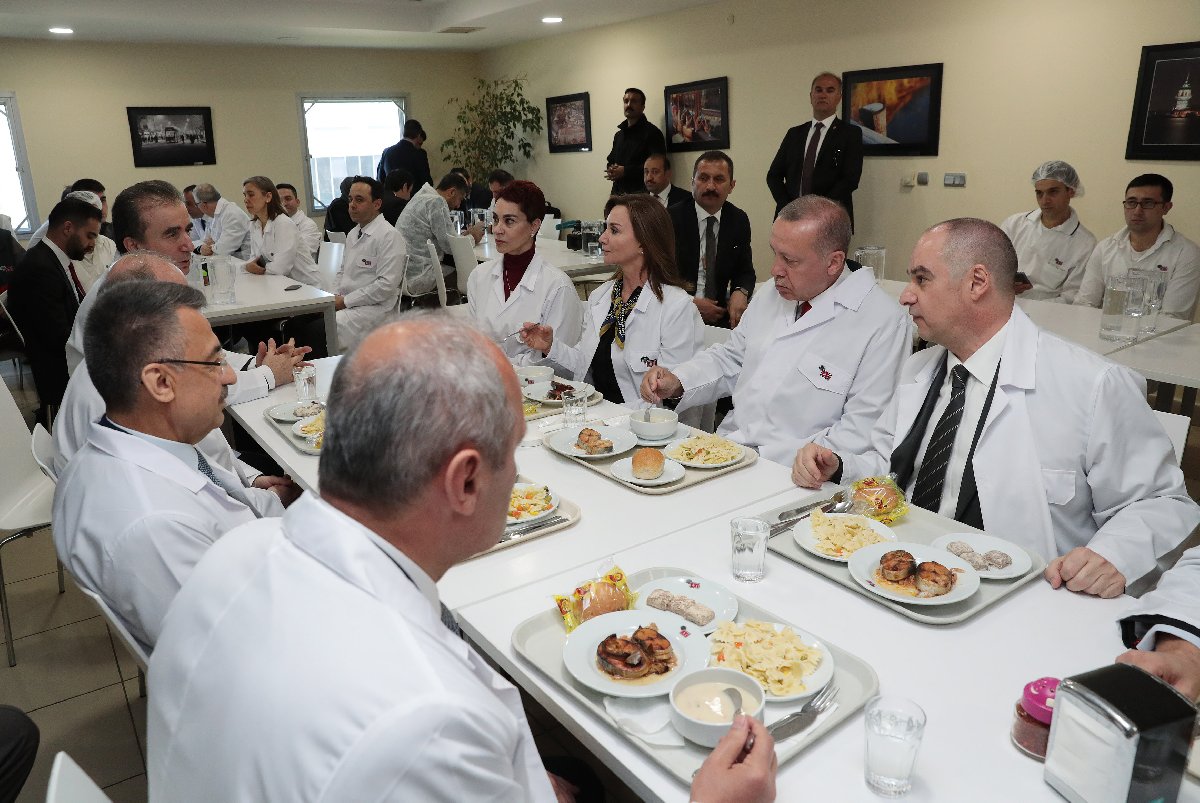Erdoğan ve beraberindekiler daha sonra burada personelle birlikte yemek yedi. Ziyarete Cumhurbaşkanı Yardımcısı Fuat Oktay da katıldı.