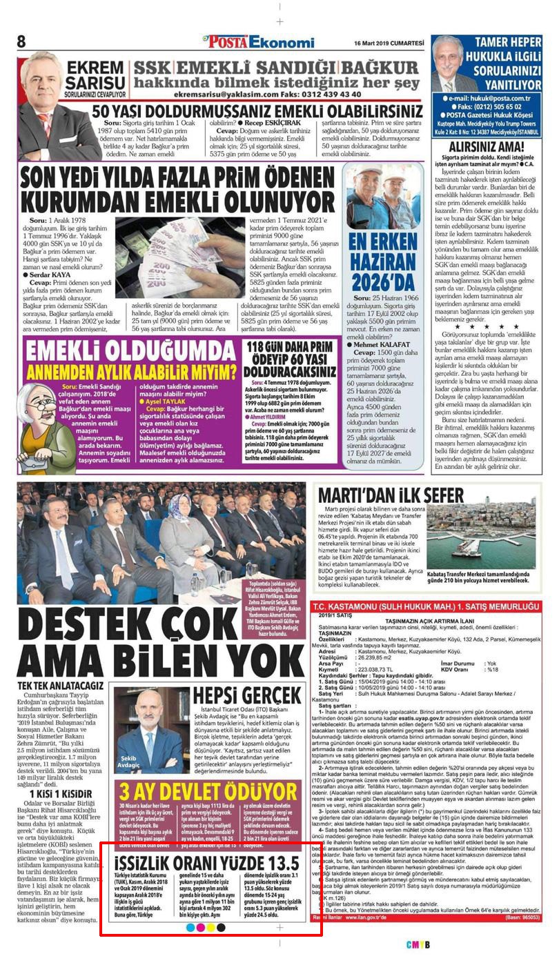 Posta Gazetesi iç sayfalarında işsizlik haberinde şöyle yer verdi