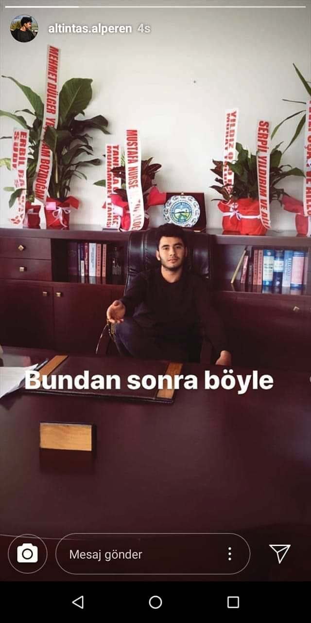 AKP’li Belediye Başkanı Altıntaş’ın oğlu Alperen Altıntaş, skandal pozunun üzerine de “Bundan sonra böyle” diye yazdı. Başkan’ın oğlunun, babasının makam masasında bacak bacak üstüne elinde tespihle verdiği bu poz, büyük tepki çekti.