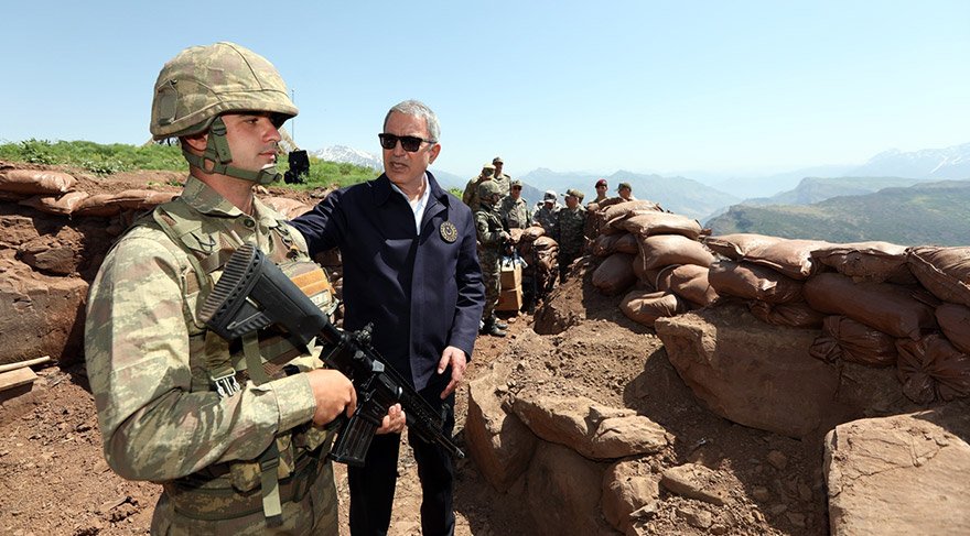 Akar, beraberinde Genelkurmay Başkanı Orgeneral Yaşar Güler, Kara Kuvvetleri Komutanı Orgeneral Ümit Dündar, Deniz Kuvvetleri Komutanı Oramiral Adnan Özbal ve Hava Kuvvetleri Komutanı Orgeneral Hasan Küçükakyüz ile Pençe harekat bölgesindeki inceleme ve denetlemeleri kapsamında dün Büyüktopraklı Üs Bölgesi'ne de gitti.