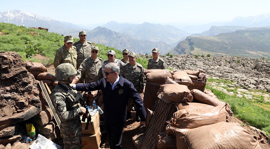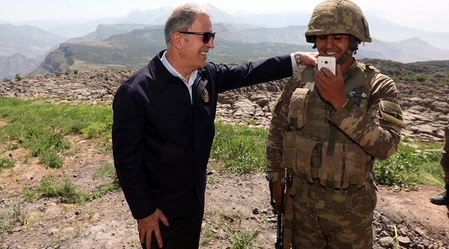 Balkayalar bölgesinde sınırın sıfır noktasındaki 2 bin 400 rakımlı üs bölgesine gelişinde birlik komutanından hudut tekmili alan Akar, daha sonra mevzideki askerlerle tek tek sohbet etti. Askerlerin bayramını kutlayan Akar, Hakurk bölgesini gören üs bölgesindeki faaliyetlere ilişkin brifing aldı.