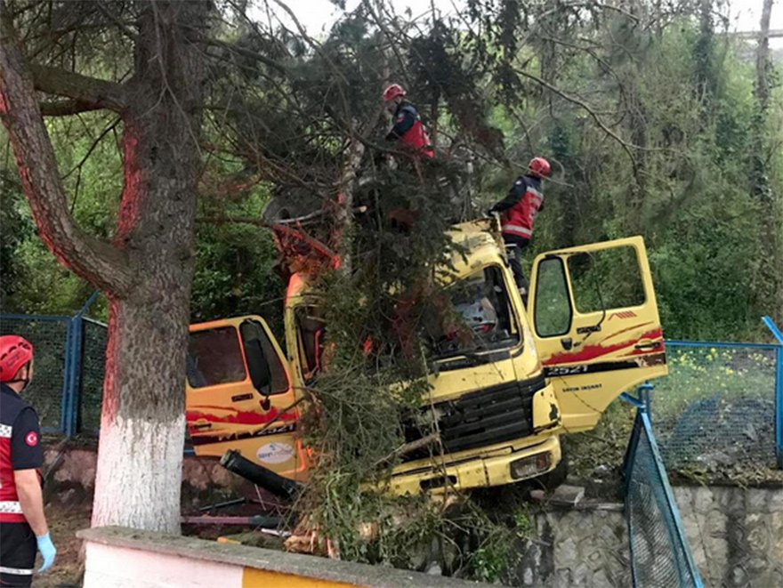 Kamyon, Sakarya Büyükşehir Belediyesi Su ve Kanalizasyon İdaresinin tesislerinin duvarına çarparak durabildi. Kamyonda bulunan Fevzi Doğan şarampole uçan kamyondan atlamaya çalışırken aracın altında kalarak yaşamını yitirdi.
