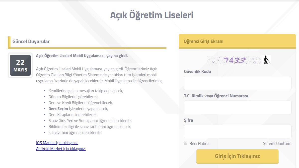 AÖL SINAV YERİ SORGULAMA EKRANI