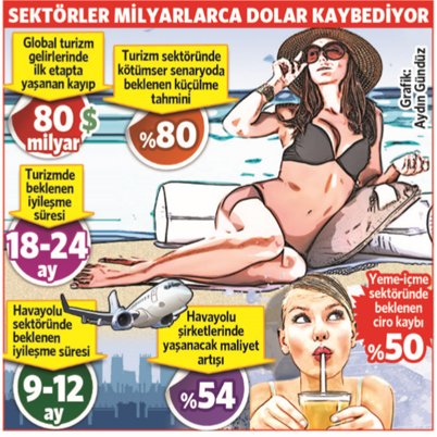 İlk çeyrekte uluslararası arenada 2020 için özellikle havacılık ve turizm sektörü açısından yüzde 70-80 arasında bir küçülme tahmin edilirken, yeme-içme sektöründe ise pek çok oyuncunun Covid-19 sonrası kepenk açamayacağı belirtiliyor.