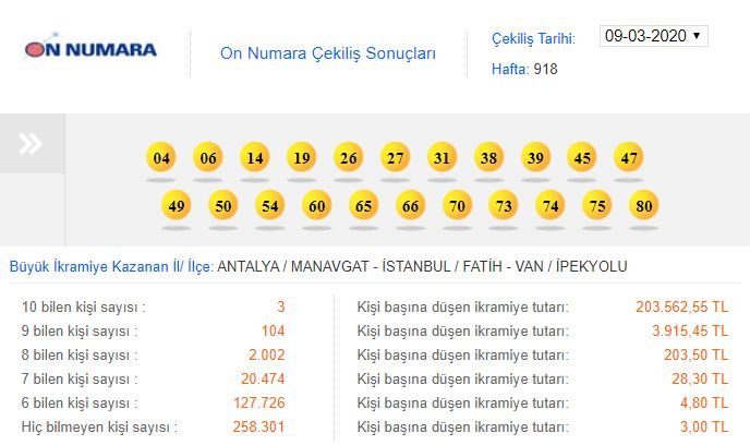 ON NUMARA SONUÇLARI AÇIKLANDI