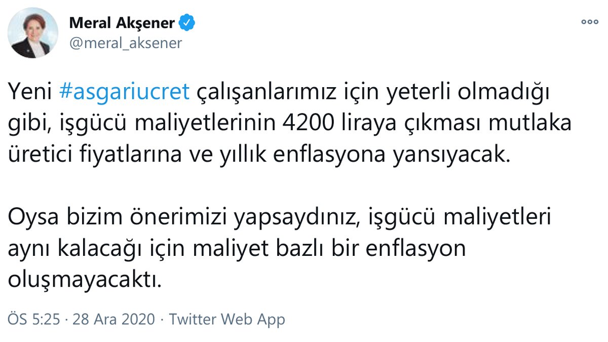 * Oysa bizim önerimizi yapsaydınız, işgücü maliyetleri aynı kalacağı için maliyet bazlı bir enflasyon oluşmayacaktı.
