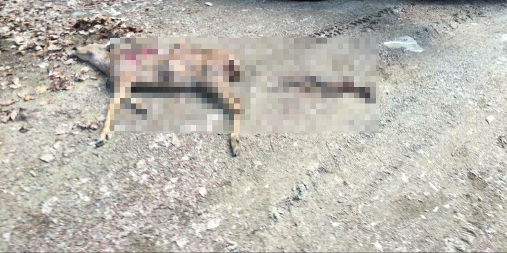 Bu kişi, köpeğini kaçmaya çalışan yaralı karacanın üzerine saldı. Yaralı karaca koşarken düşük yaptı. Köpek yavru karacayı parçaladı.