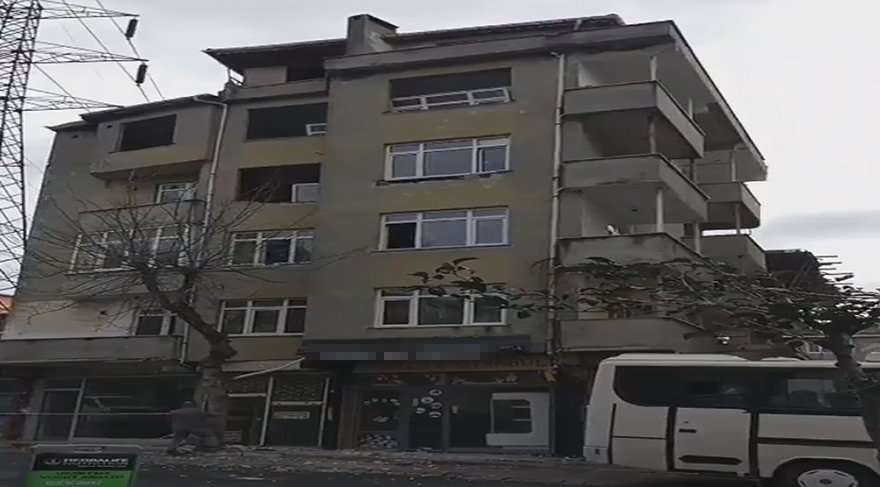 Pazar tezgahları ile güvenlik önlemi alınan alanda binadaki pencereler sökülürken, yere beton parçaları düştü. O anlar cep telefonuyla kaydedilerek, sosyal medyada paylaşıldı.