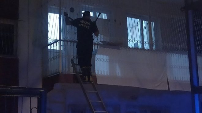 İtfaiye ekipleri, İ.Ç.'nin bulunduğu ikinci kattaki dairenin balkonuna merdivenle çıkarak demir parmaklıkların bir kısmını kesti.