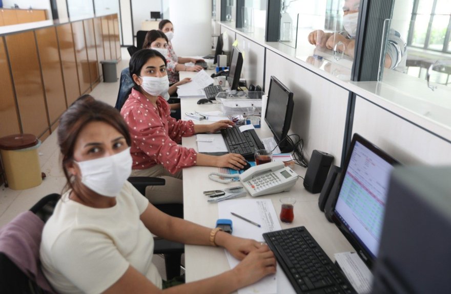 - Çalışma ortamlarında maske ağzı ve burnu tam olarak kapatacak şekilde kullanılmalı, eller sık sık yıkanmalı veya el dezenfektanı ile temizlenmeli. İş arkadaşlarıyla araya 1.5 metre mesafe konmalı.