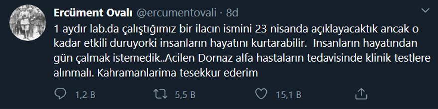 Özetle, Dornaz alfa eski bir ilaçtır. Kistik fibrozis tedavisinde kullanılır, hava yollarını temizler. Bazı ülkelerde deneysel olarak COVİD-19 enfeksiyonunda hava yolu temizliği için kullanılmıştır. COVİD-19 tedavisinde mucize bir ilaç değildir. Henüz kanıtlanmış etkisi yoktur. Maliyeti çok yüksektir.