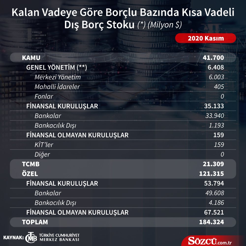 3 milyar dolarlık kısa vadeli dış borcu olduğu görüldü.