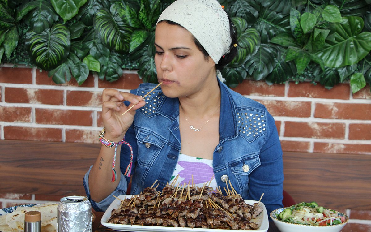 Önüne koyulan çöp şişleri yemeye başlayan Özen, 37 dakika içerisinde 247 adet çöp şiş tüketerek yeni rekora imza attı.