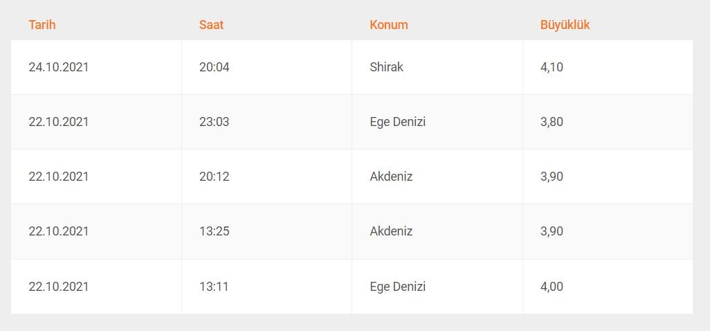 Yaşanan depremlerin saatini ve şiddetini anlık olarak takip etmek mümkün. Boğaziçi Üniversitesi Kandilli Rasathanesi ve Deprem Araştırma Enstitüsü Bölgesel Deprem- Tsunami İzleme ve Değerlendirme Merkezi (BDTİM) tarafından kaydedilen depremlere aşağıdaki linkten ulaşabilirsiniz.